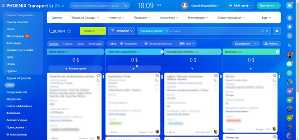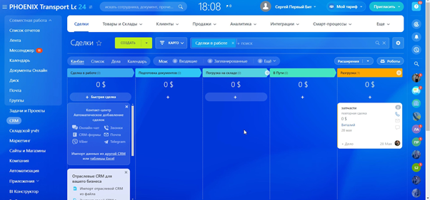 По завершении продажи сделки переходят в воронку логистики, где сотрудники уже контролируют доставку. Этапы логистики включают: