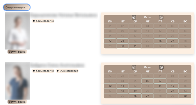 Для каждого врача указан определенный перечень услуг и их стоимость, что позволяет отслеживать финансовые результаты в МИС и сделать процесс записи прозрачнее для клиента.