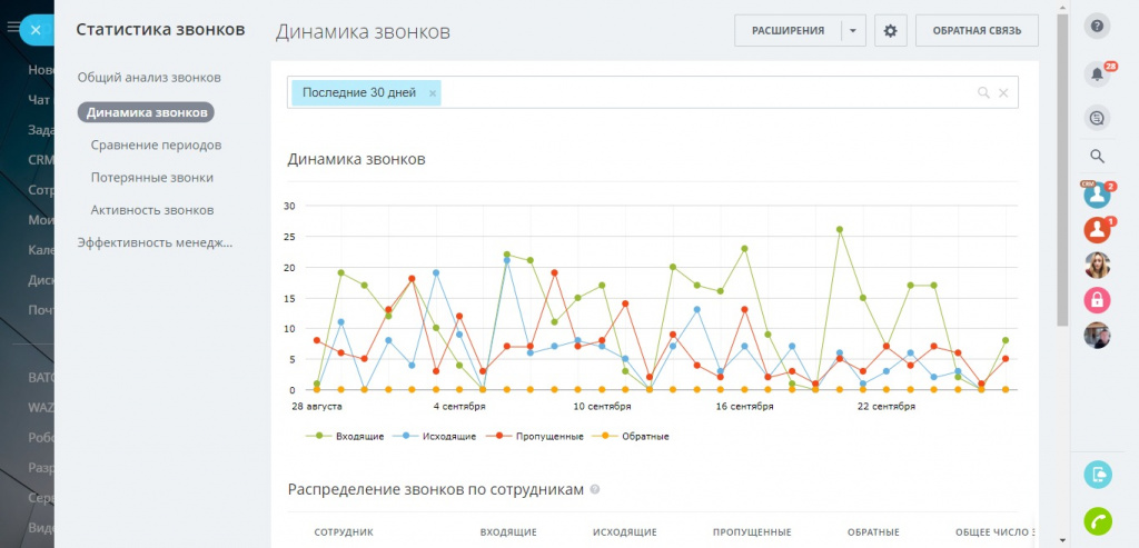 Во внедренном решении также была настроена сквозная аналитика – удобный инструмент, с помощью которого можно отследить весь путь клиента от первого обращения до выполненного заказа. С помощью сквозной аналитики собирается статистика по всем источникам и этапам воронки продаж. Благодаря тому, что в сквозной аналитике хранится вся информация, могут быть настроены отчеты по любым параметрам, например, стоимость лида в разрезе каналов привлечения в общем по компании или по офисам, частота обращений клиентов по каждому каналу и др. Этот инструмент позволяет проводить качественный анализ любых показателей и оценивать качество работы менеджеров, например, отчет по пропущенным звонкам показывает, какое количество звонков было пропущено каждым менеджером за указанный период.