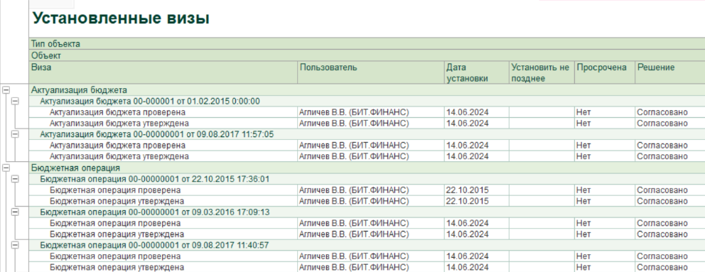 История визирования с установленными визами в БИТ.ФИНАНС