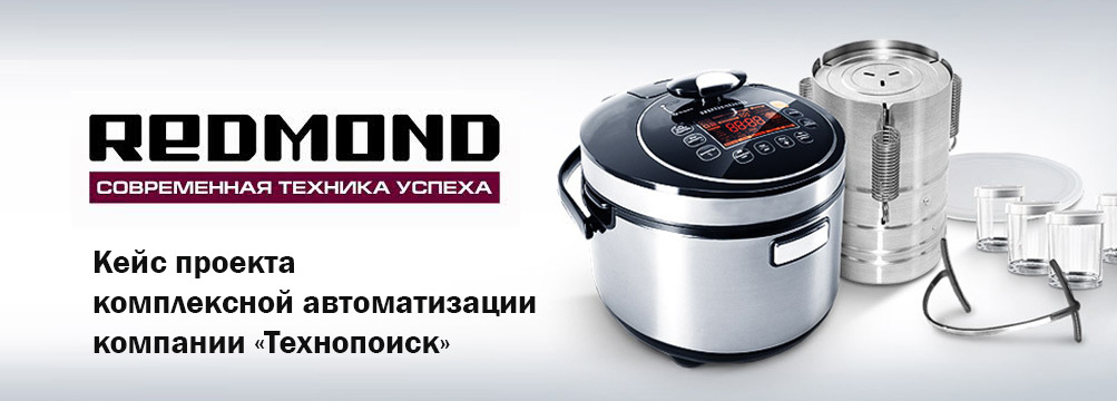 ИНФОРМАЦИЯ О ЗАКАЗЧИКЕ Крупный торговый холдинг «Технопоиск» - одна из ведущих и динамично развивающихся компаний по оптовым продажам аудио-‚ видео- и бытовой техники. Компания «Технопоиск» является эксклюзивным дилером ряда торговых марок (Redmond‚ Maxima‚ BodyKraft‚ Compak и пр.). ООО «Технопоиск» работает уже 20 лет и является поставщиком всех известных сетей гипермаркетов и специализированных магазинов бытовой техники России: «Лента»‚ «О’кей»‚ «Телемакс»‚ «Техношок»‚ «Калинка»‚ «Карусель»‚ Media Markt и других. В состав компании «Технопоиск» входят 9 основных подразделений, 20 региональных представительств. REDMOND – это холдинг, объединяющий представительства компании на территории США, Восточной и Западной Европы, Латинской Америки, ОАЭ, Турции, Китая, а также всего СНГ.